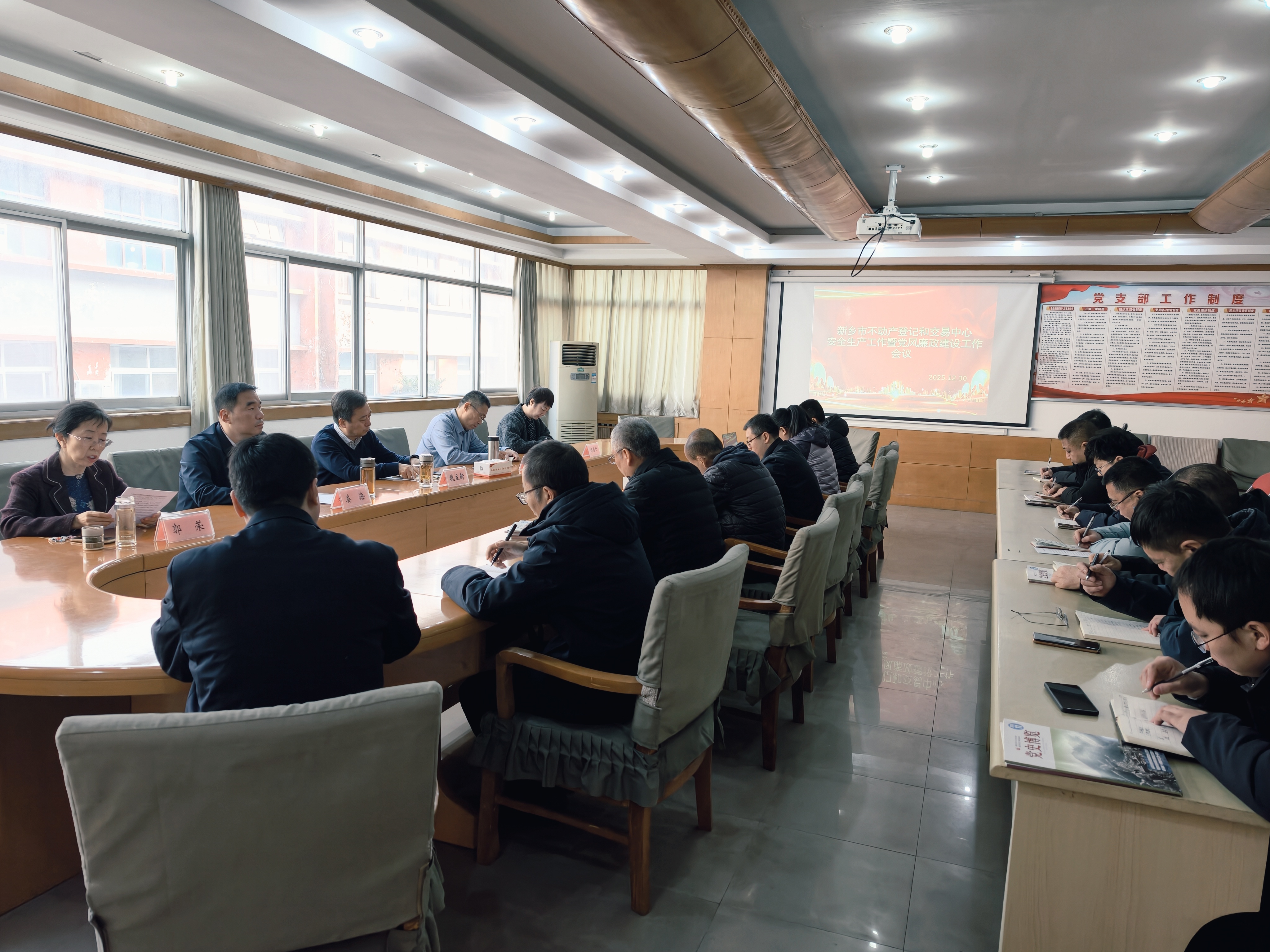 为持续深化党风廉政建设,全面筑牢安全发展根基,2025年12月30日,新乡市不动产登记和交易中心召开2025年度党风廉政建设暨安全生产工作会议。中心副主任娄海主持会议,党委副书记魏立新出席会议并讲话,中心党委委员,各科室、分中心及各下属企业负责人参加会议。