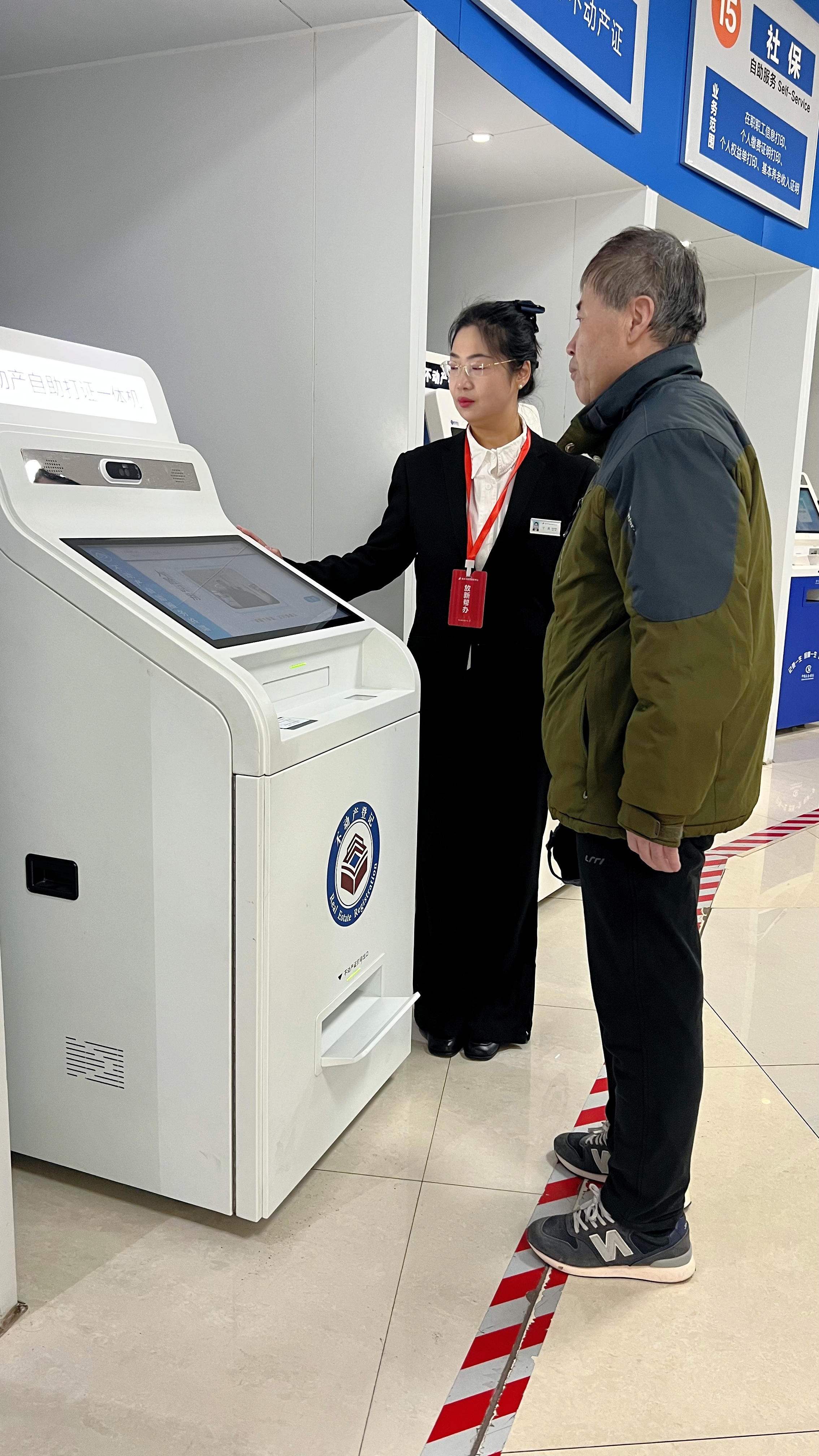 他们耐心讲解设备操作步骤,细致核对打印信息,及时排查解决操作过程中出现的各类故障,让智能服务不再“水土不服”。2025年,团队累计提供现场指导操作约3800余次,让自助服务真正实现“易操作、高效率、零障碍”,有效分流了窗口办理压力。