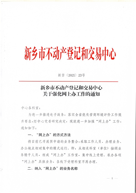 新乡市不动产登记和交易中心关于强化网上办工作的通知